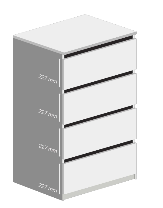 - 227mm high drawer faces for customization.